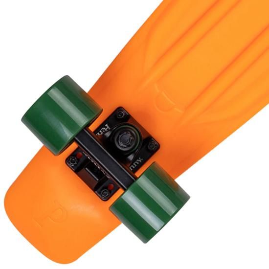 鮮やかなオレンジのデッキに落ち着いたブラックのトラックに深いグリーン。